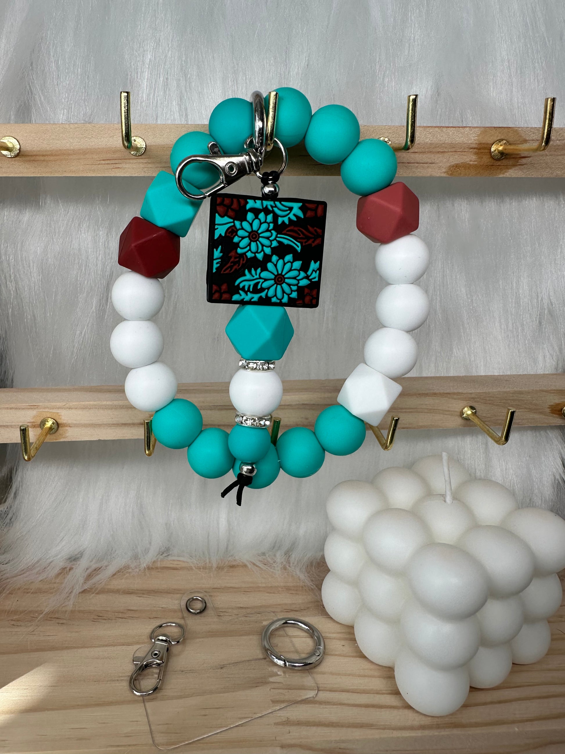 Mobile phone accessory wristlet and keychain charm. This multi-functional accessory comes complete with one (1) wristlet, one (1) keychain/charm, and one (1) clear tether tab for your mobile phone. Handcrafted in Penny's House.