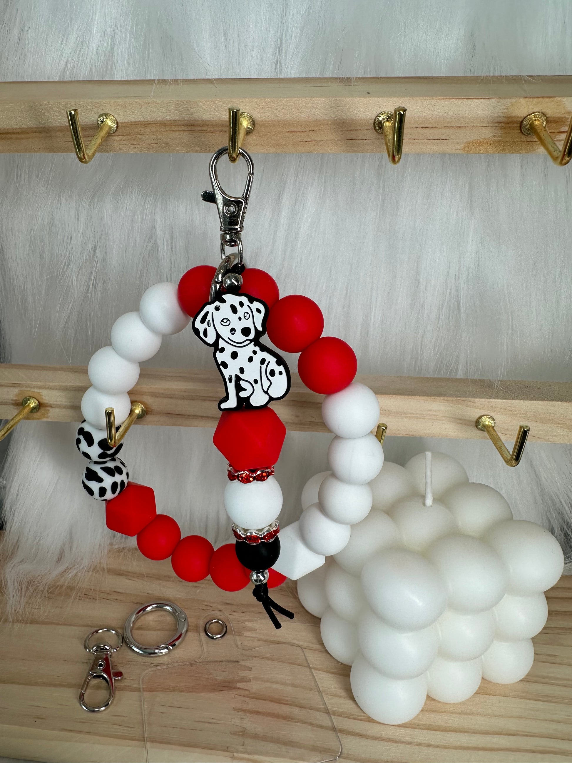 Mobile phone accessory wristlet and keychain charm. This multi-functional accessory comes complete with one (1) wristlet, one (1) keychain/charm, and one (1) clear tether tab for your mobile phone. Handcrafted in Penny's House.