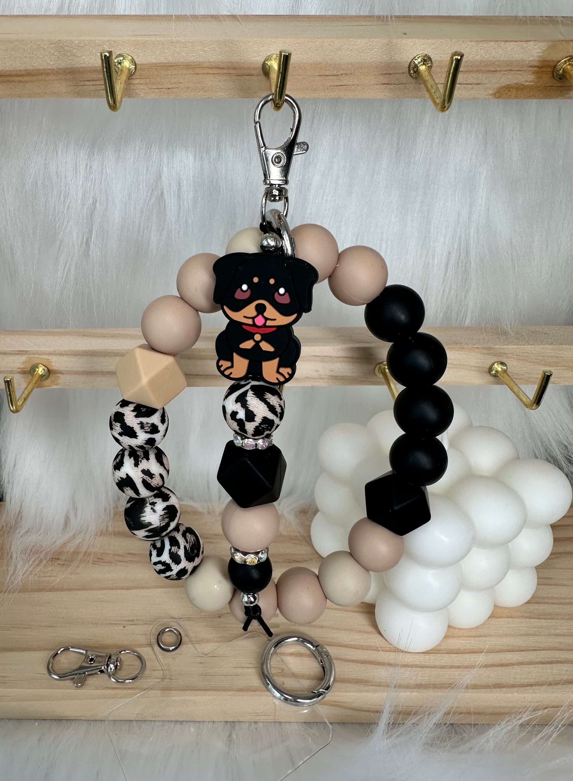 Mobile phone accessory wristlet and keychain charm. This multi-functional accessory comes complete with one (1) wristlet, one (1) keychain/charm, and one (1) clear tether tab for your mobile phone. Handcrafted in Penny's House.