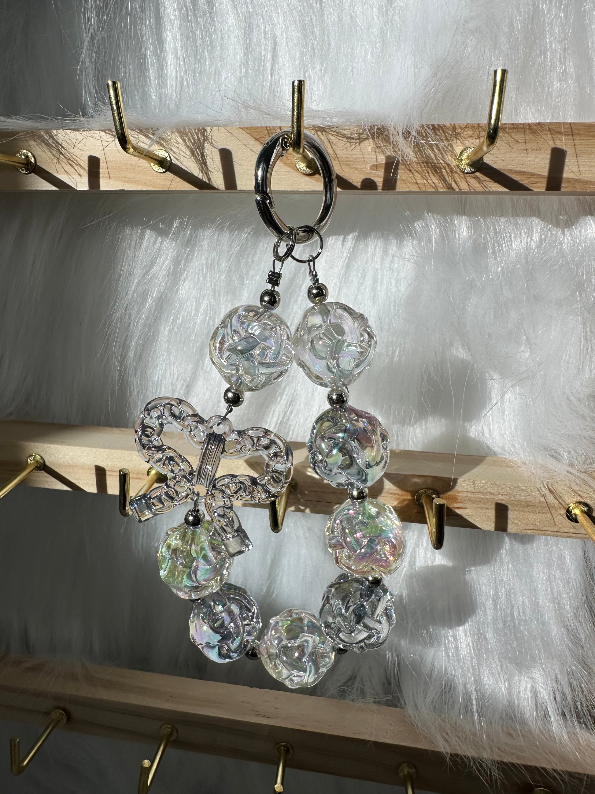 Mobile phone accessory wristlet or keychain charm. This multi-functional accessory comes complete with one wristlet, and one clear tether tab for your mobile phone. Hang it on your hand bag, luggage, or backpack. The possibilities are endless!